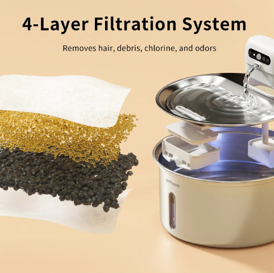 Value Proposition: Solves the problem of cord clutter and limited placement options associated with traditional electric fountains. The smart motion activation conserves battery life and provides an interactive experience that encourages pets to drink more.