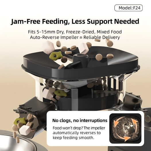 | Basic Version | F24-L | F24-DL | Offline Feeding, Scheduled Meals, Battery Backup (No WiFi/App/Connectivity) | The owner seeking reliable, programmed automatic feeding without smart features. |